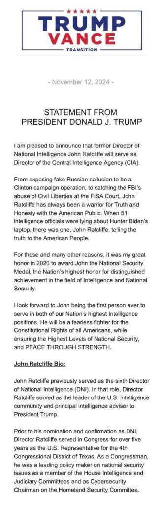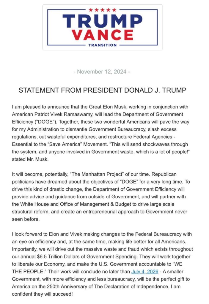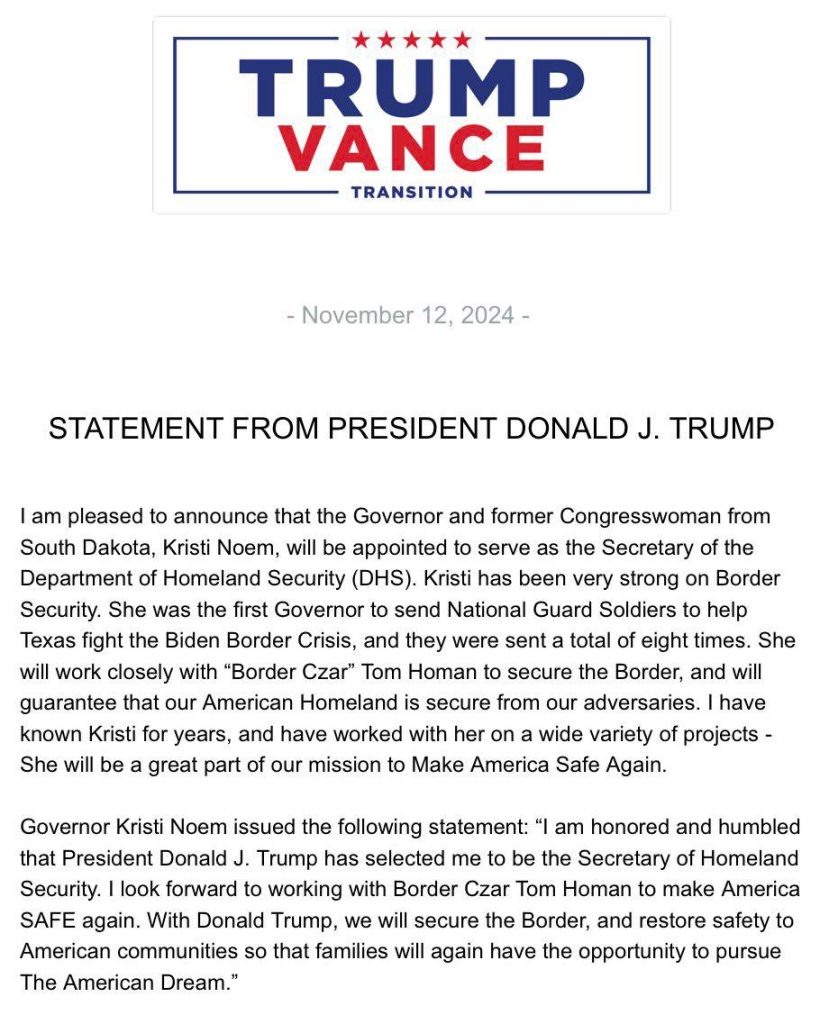 Following the landslide results of the USA Presidential Election 2024 by President Trump and the Republican Party as shown in last weeks USA Election 2024 – GEMA Special Report, this week we focus on the transition as President Trump lays out his plans and starts electing his team.